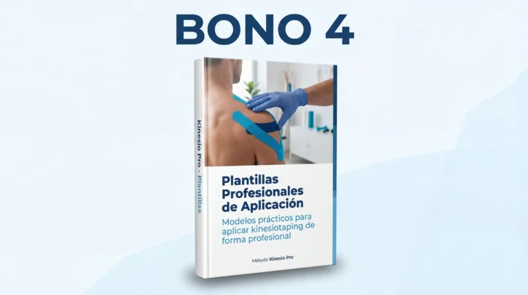 BONO 4 - Plantillas Profesionales de AplicaciónAccede a plantillas profesionales de kinesiotaping que facilitan la aplicación correcta del vendaje neuromuscular. Aprende a identificar las zonas de aplicación y a utilizar patrones efectivos para mejorar el soporte muscular, la estabilidad articular y la recuperación funcional.